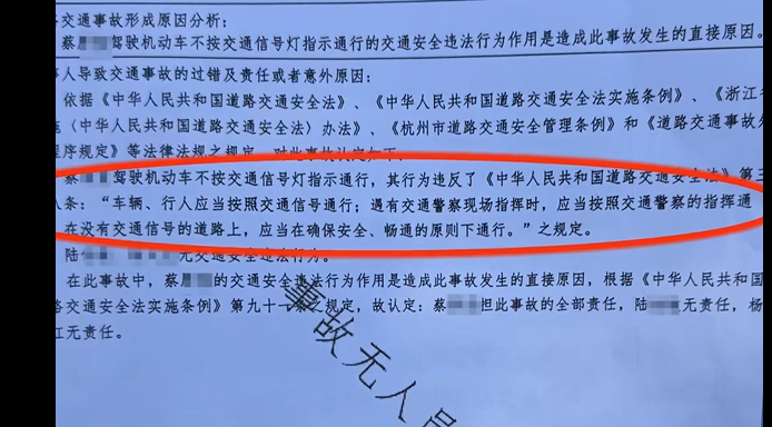 蔡师傅表示,自己助人为乐却好事变坏事,“我等了一个多月以后,结果认定我闯红灯全责,萧山盈丰交警中队有人跟我谈,给我申请见义勇为称号,适当给我一定补偿,我没接受。”